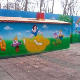 墻繪卡通圖案在幼兒園的主題墻裝飾中非常流行,成本低,效果好,為幼兒園設(shè)計(jì)中首選裝飾方法。